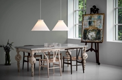 Pendlen har et eksklusive og tidløst udtryk med en skærmlængde på 30 cm målt fra underkanten af skærmens krave. Lampen leveres som en komplet pendel med skærm, specialstativ, messingophæng og en smuk hørledning.
