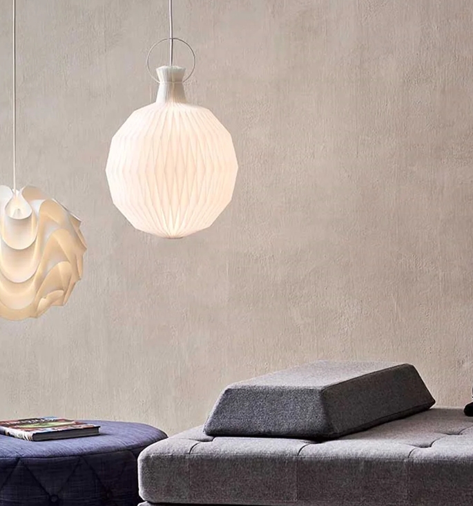 Lampen er med LE KLINTs papirskærm. Lampen findes dog også med plastskærm.
