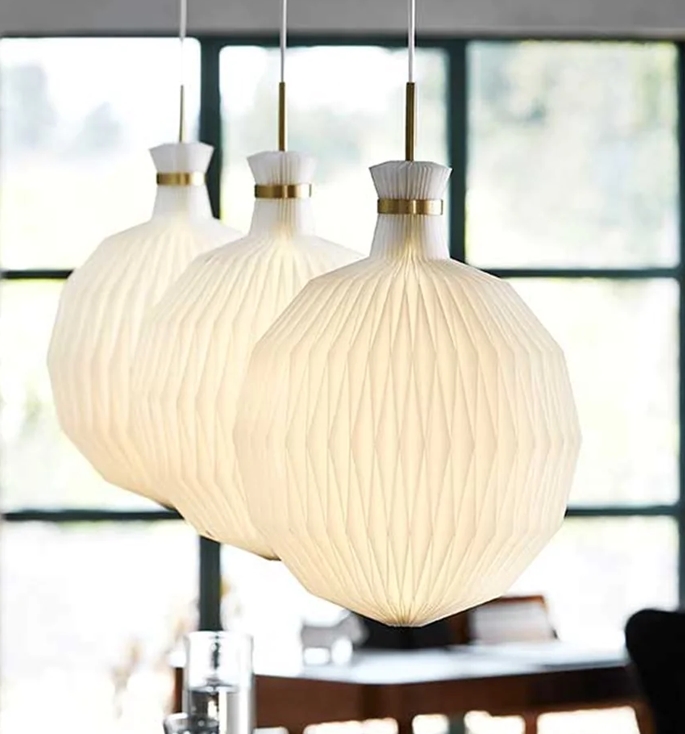 Lampen er med LE KLINTs standardskærm, som er i plast. Lampen findes dog også med papirskærm.
