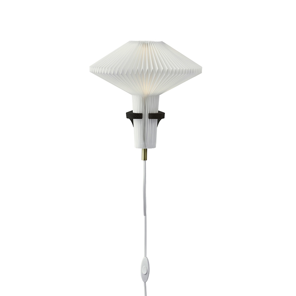 LE KLINT væglampens base er af ubehandlet sortbejdset eg, og den fine plisserede skærm er håndfoldet.