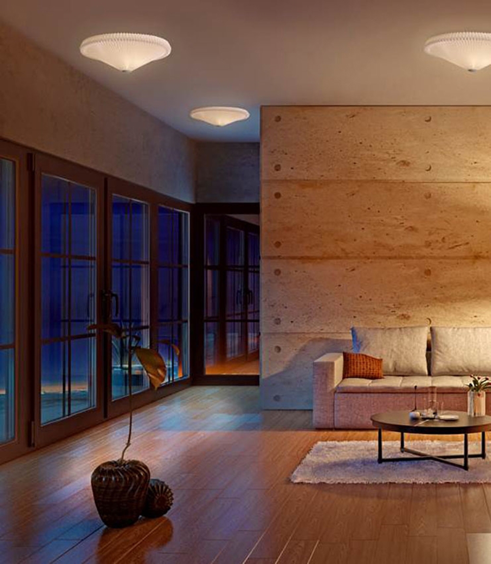 Den enkle 26-70 loftlampe har en smuk plisseret skærm, som sørger for et godt og jævnt lys i ethvert rum.