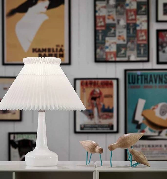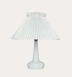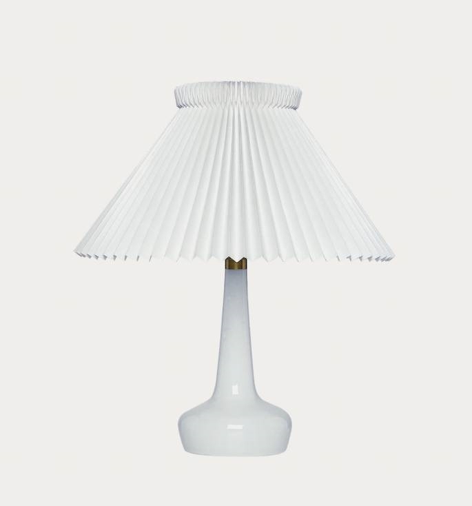 Denne klassiske opale bordlampe fra LE KLINT blev designet i 1949. 311 bordlampen er i opalhvid mundblæst glas med håndfoldet skærm.