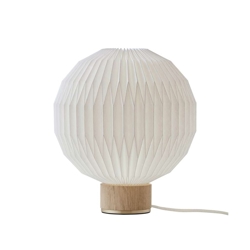 Skærmen er en essentiel del af LE KLINT lampen, og den er stadig som Esben Klints originale design på 107 pendlen. Hertil har LE KLINT bordlampen en fin base i lys eg med messingdetaljer.