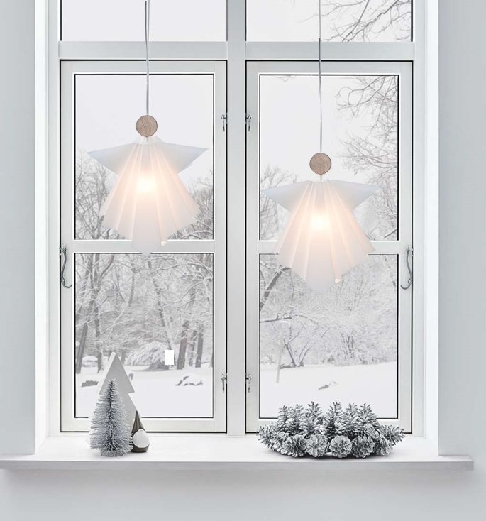 Englene skal være en påmindelse om, at vi i de mørke efterårs- og vintertider skal passe på hinanden. Lad endvidere den lysende engel i hjemmet skabe en varm atmosfære og smuk dekoration, hvor de gamle foldeteknikker er fastholdt i et stramt og enkelt design. Her oplever du samme kvalitetsmateriale og principper, som du kender fra LE KLINTs verdenskendte håndfoldede lampeskærme.