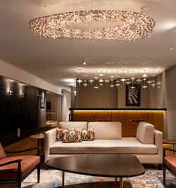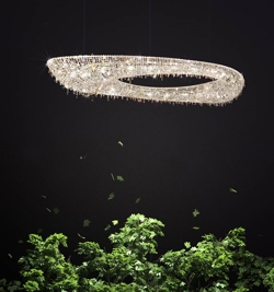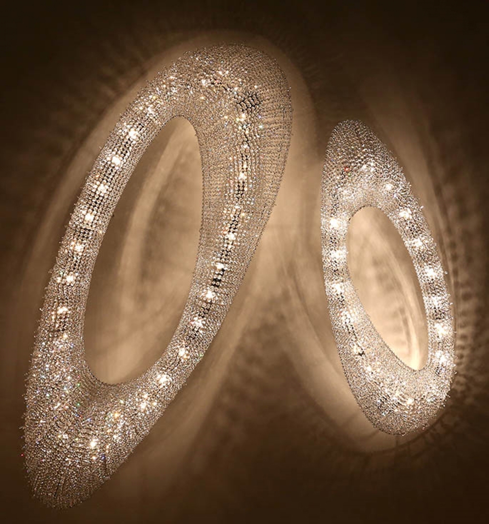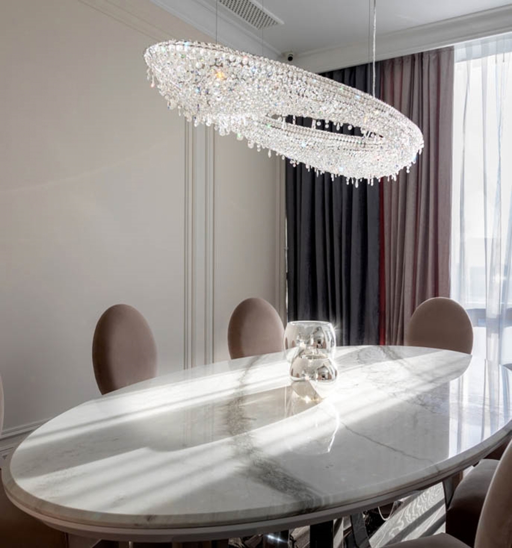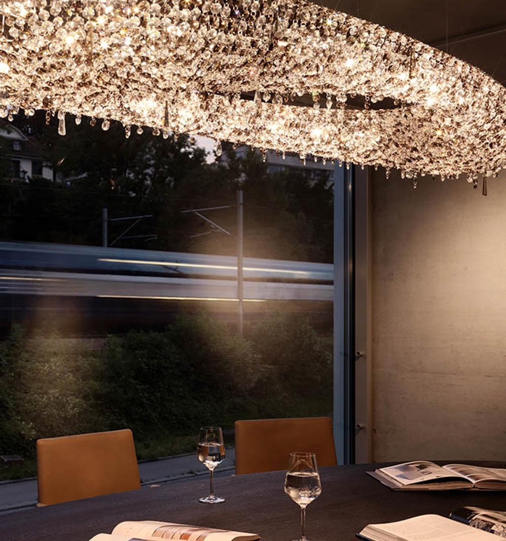 Lysekronen har en elliptisk buet form, som er med til at gøre den unik. Artica er også belagt med krystaller, der gør den til en eksklusiv juvel i rummet.