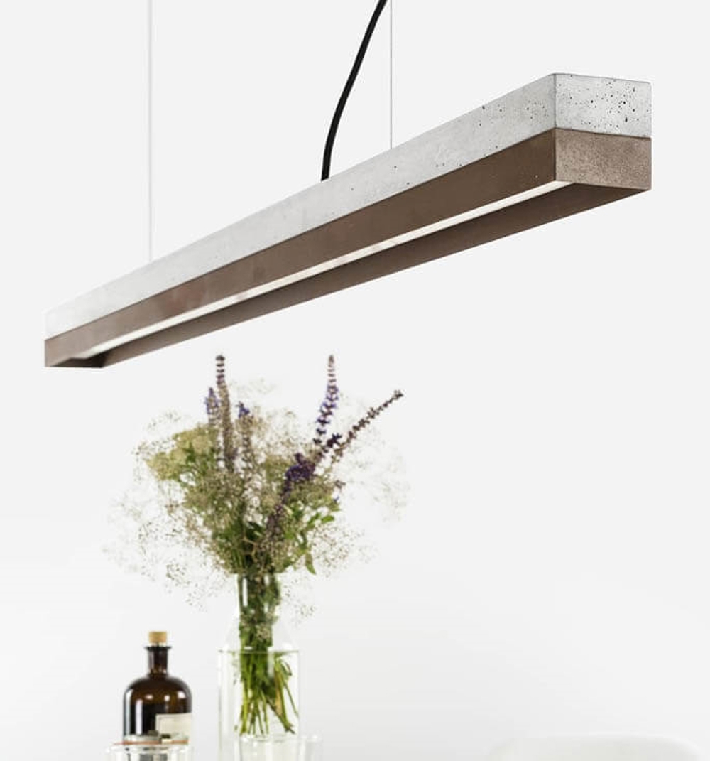 De eksklusive pendler har et minimalistisk og tidsløst design i enestående kvalitet med håndlavede skærme. C1 pendlen på 122 cm kan vælges med bund af lysegrå eller mørkegrå beton og egetræ, som kombineres med top af cortenstål, rustfrit stål, oxideret kobber, kobber, messing, egetræ eller valnøddetræ.