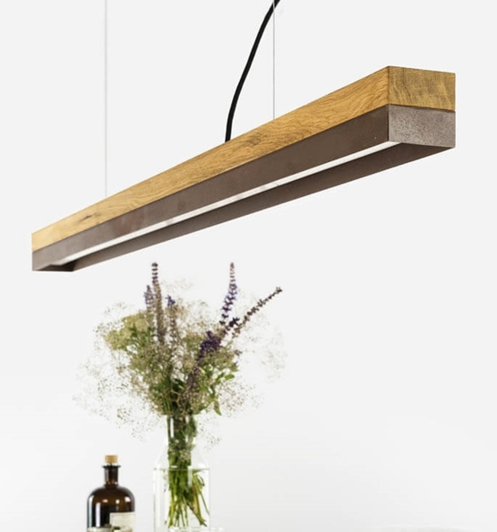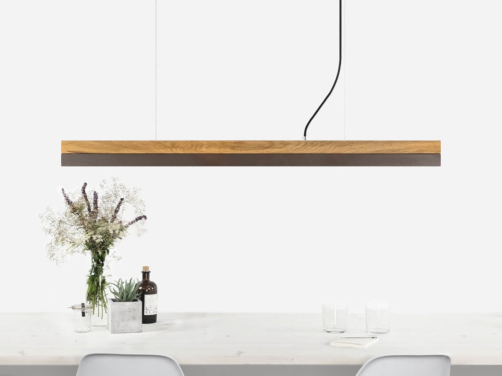 De eksklusive pendler har et minimalistisk og tidsløst design i enestående kvalitet med håndlavede skærme. C1 pendlen på 122 cm kan vælges med bund af lysegrå eller mørkegrå beton og egetræ, som kombineres med top af cortenstål, rustfrit stål, oxideret kobber, kobber, messing, egetræ eller valnøddetræ.