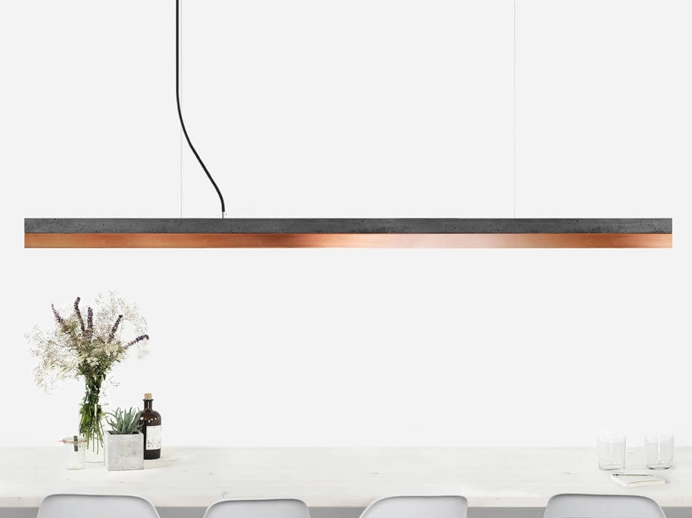 C3 pendel, mørkegrå beton/kobber