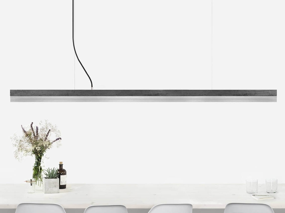 De eksklusive pendler har et minimalistisk og tidsløst design i enestående kvalitet med håndlavede skærme. C3 pendlen på 182 cm kan vælges med bund af lysegrå eller mørkegrå beton og egetræ, som kombineres med top af cortenstål, rustfrit stål, oxideret kobber, kobber, messing, egetræ eller valnøddetræ.