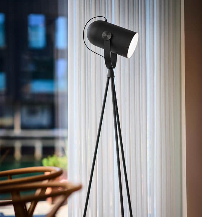 Carronade er nærmest skulpturel med sit unikke design, men kan sagtens benyttes som den klassiske LE KLINT standerlampe, da lyset kan retningsbestemmes ud fra ens behov.