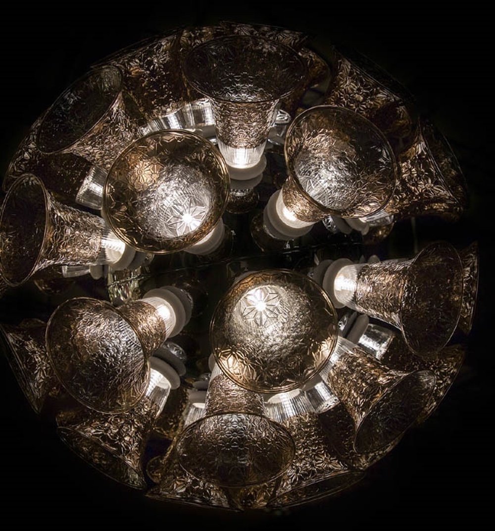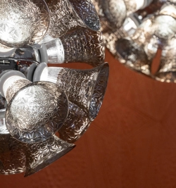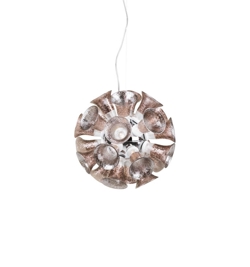 Chalice 24 pendlen er utrolig unik med meget fine detaljer på de smukke bægere med semi-transparent kobberbelægning på glasset, hvor lyset også udstråles fra. Endnu en enestående detalje ved Chalice pendlen er den forkromede sfære lignende kugle i midten af lampen, der er med til at give en fantastisk effekt til rummet.