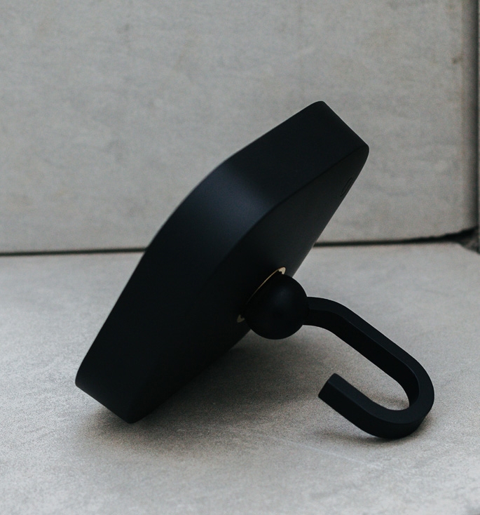 Dette er kun en Flai krog i sort. For at 'bygge' denne til en lampe - og for at få glæde af Flai lampernes funktionalitet med at omdanne lampen til forskellige lampetyper, skal der tilkøbes et Flai lampehoved, som findes i sort og hvid.