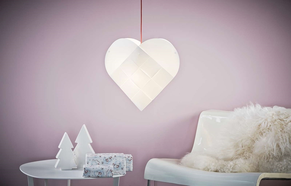 Smukt lysende hjerte - flettet i det samme kvalitetsmateriale som de ikoniske og verdenskendte håndfoldede LE KLINT lampeskærme.