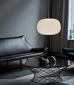 Lamella lampeserien er inspireret af lamellerne på undersiden af en paddehat eller svamp, der har fine kurver og fører tilbage til klassiske origamifoldninger.