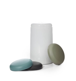 Lampen er lavet af polycarbonat, hvor der medfølger 3 forskellige clip-on covers til toppen af lampen i forskellige farver.