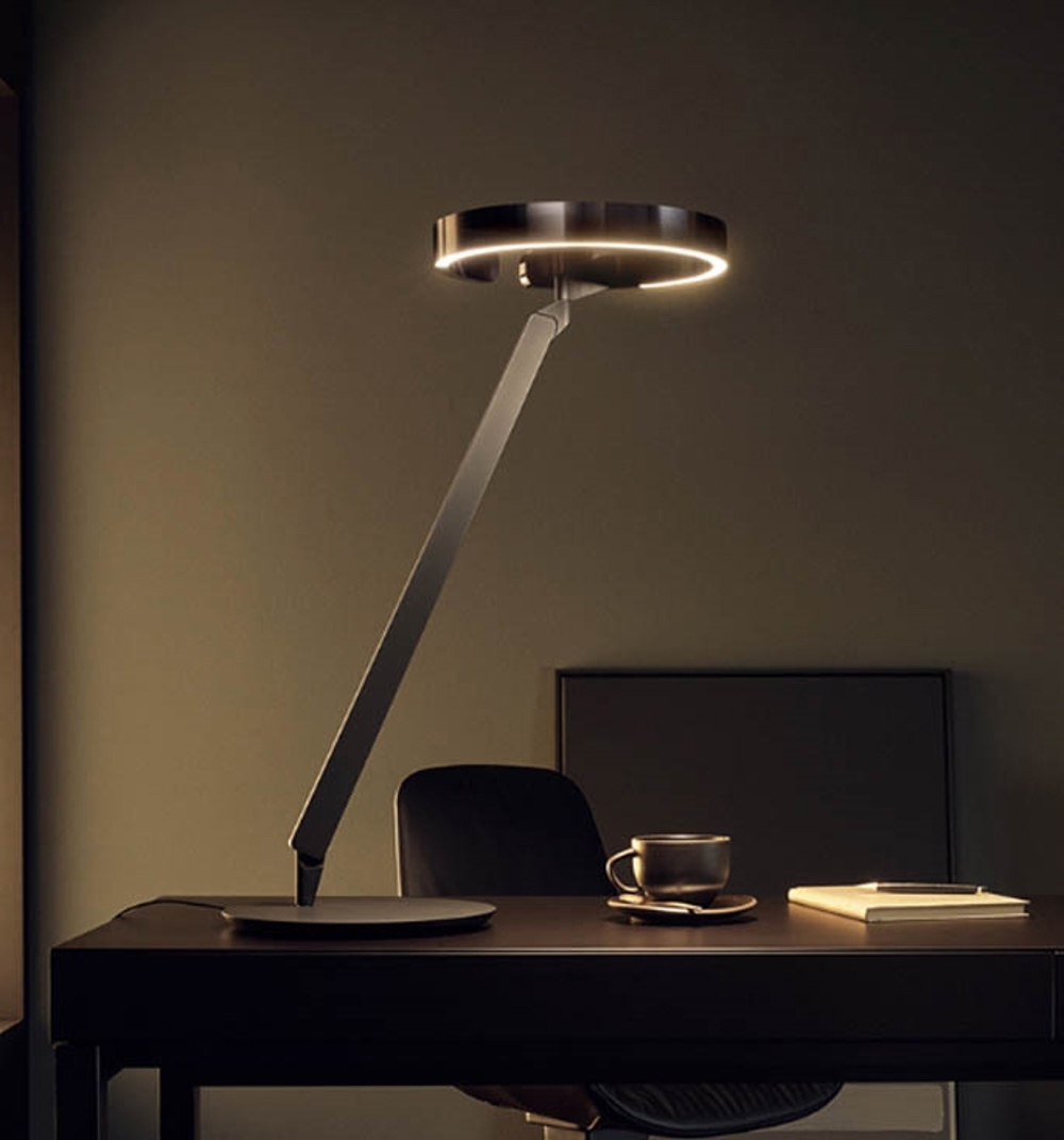 Gioia bordlampen har 'Occhio Air' så regulering, justering og dæmpning også kan ske via app på mobiltelefon.