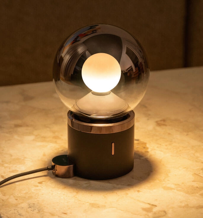 Luna Pura bordlampen har et blødt og blændfrit lys og er introduceret af Occhio i 2024. Den kan kontrolleres via basen eller styres via app eller controller takket være ’Occhio air’.