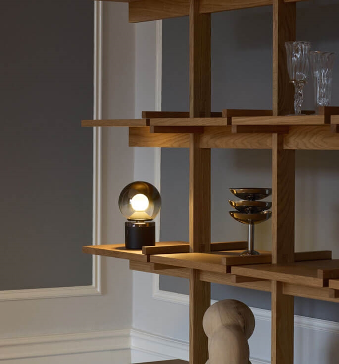 Luna Pura er transportabel og nem at tage med sig. Den udsender et blødt og blændfrit lys fra Occhio fireball-optikken i midten af lampens kugleformede glasskærm. Basen er i mat sort og afsluttes før glasskærmen med en top i phantom.