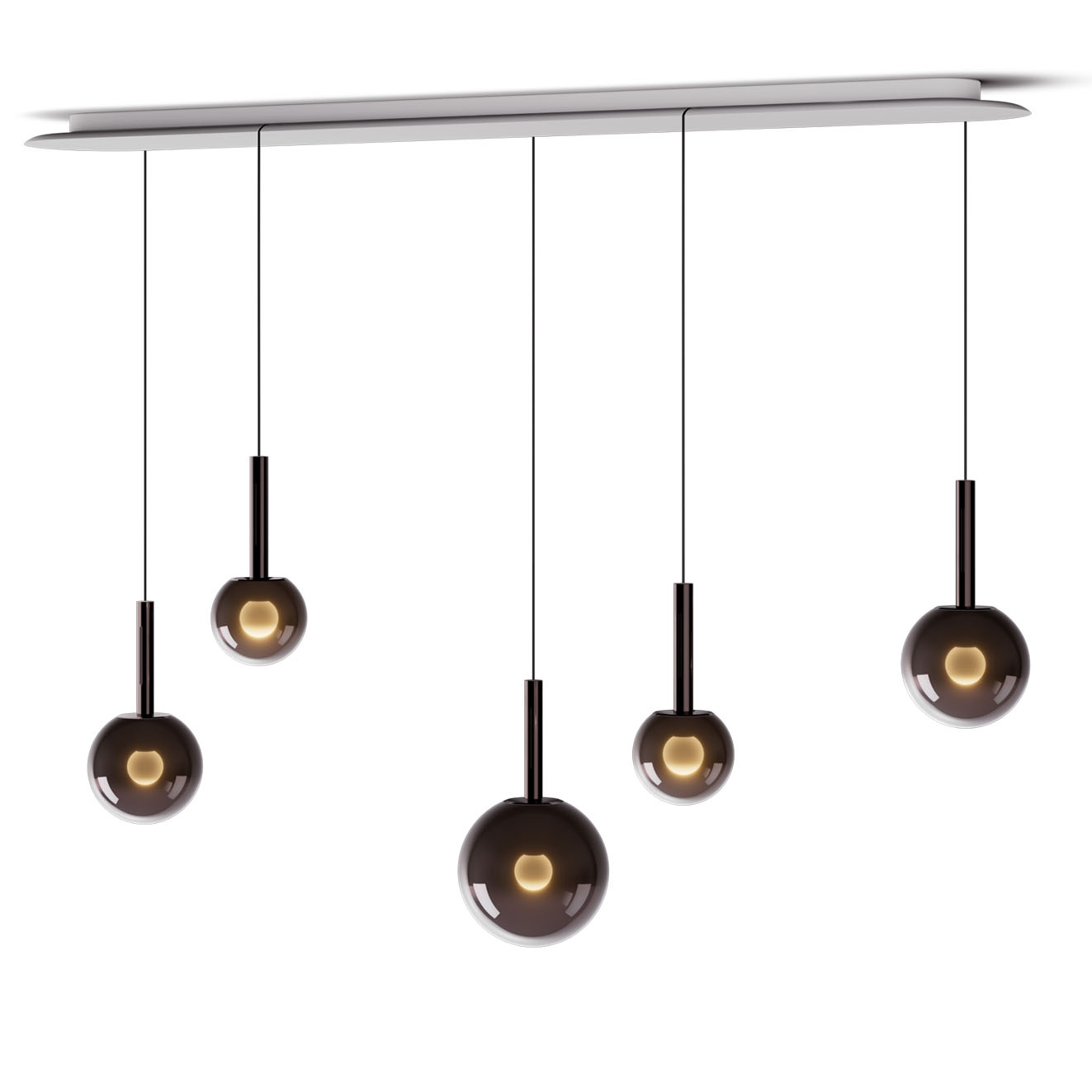 Occhio Luna Sospeso Cloud er en klyngependel med tre eller fem glaskupler med rund eller aflang hvid baldakin. Hver kugle svæver frit og reflekterer lyset i smukke, dynamiske mønstre. Designet bygger på Luna Sospeso-seriens måneinspirerede æstetik og kombinerer minimalistisk elegance med funktionelt lys.