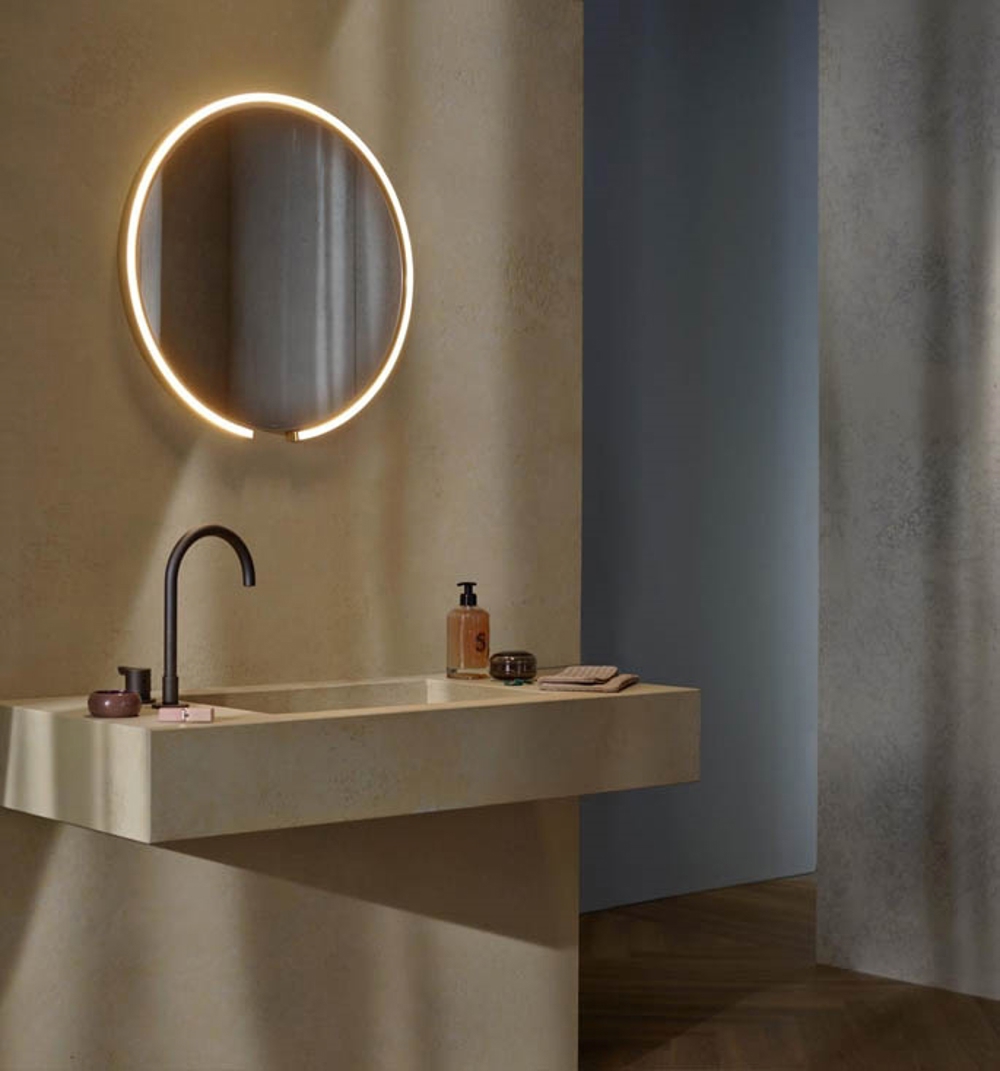 Denne variant af Mito sfera består af spejl og lampe i én enhed, hvilket sikrer en blændfri og fantastisk belysning af ansigtet.