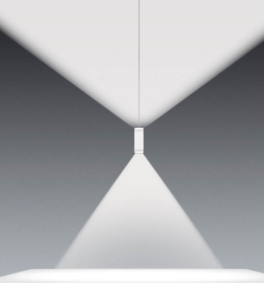 Mito Volo giver et enestående dobbeltsidet lys, så det både oplyser bordet, men også rummet. Lampen kan monteres med variabel højde 65-165 cm.