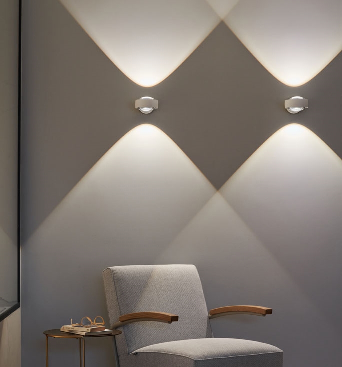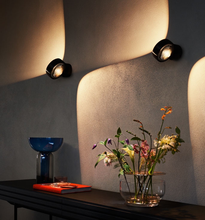 Occhio Sento verticale væglampe med carbon handle i flere varianter.