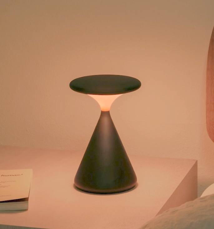 Salt har et luksuriøst design, der tager batterilamper til et nyt niveau. Den enkle lampe giver et behageligt lys, der er nemt at betjene. Man kan dæmpe lyset ved at røre lampens hoved og indstille 30 minutters timer.