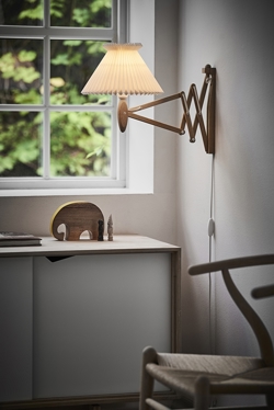 Lampen er med LE KLINTs håndfoldede skærm af papir. Lampen findes dog også med papirskærm.