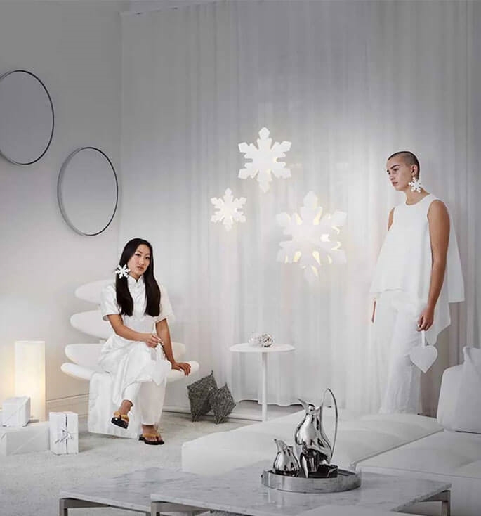 Designeren Mouritsen er inspireret af julen med de smukke snefnug, som elegant falder ned fra himlen og er med til at samle familien indenfor. Snowflake er derfor oplagt ved juletid, men kan anvendes hele året.